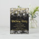 Convite de aniversário preto e dourado para mulher com brilho glamoroso e lantejoulas em prata, preto e dourado. Este convite de aniversário bonito e elegante com brilho em prata, preto e dourado é facilmente personalizado para o seu evento, adicionando seus detalhes no estilo de letra, cor e texto de sua escolha. Você também pode alterar a cor do fundo no deslumbrante design de festa de aniversário! Design impresso sem joias reais, fitas, lantejoulas, etc.