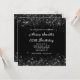 Uma celebração de 50º aniversário de um glam feminino convida-a a apresentar um brilho negro cintilante. Você pode mudar a cor de fundo sólida. Personalize o estilo de fonte da caligrafia no monograma preto e branco do rico no verso ou no estilo de fonte moderno de todos os bonés na frente. Os elementos da alegria neste design moderno são gráficos de arte digital que irão impressão como uma foto.