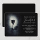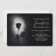 Um convite de aniversário sombrio e misterioso com uma ilustração legal de uma rosa negra em estilo goth/emo com sangue vermelho pingando de suas pétalas. Um fundo preto desgastado com uma cor creme no centro destacando essa rosa sombria e macabra.