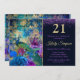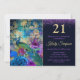 Design de Pavão Ilustrado e Flores Azuis e Púrpuras, com fundo azul e amarelo esbranquiçado e cobertura de escrita manual, e brilho brilhante púrpura