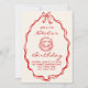 Se você procura um convite único e elegante, facilmente editado, para aniversário de 30 anos, este é perfeito para você. Como vocês podem ver, ele apresenta um roteiro escrito de mão vermelha com nome caprichoso e redação de aniversário em fundo retrocor-de-rosa. Com um bolo vermelho colorido e dentro, o 30. E um quadro ondulado de fita de arco desenhado pela mão vermelha. E RSVP nas costas. Com informações inteiras que podem ser personalizadas facilmente clicando no botão personalizar. Este convite de aniversário de tendências Quirky e exclusivo também é um convite eletrônico digital se você quiser enviá-lo por e-mail ou texto. Então pegue e faça seus convites verdadeiramente engajados.