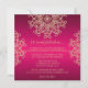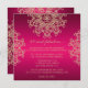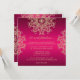 Uma linda fuchsia e ouro qualquer convite de aniversário etário com um padrão de sari de medalhão ornamental inspirado por um índio exótico com um lótus e um design floral. Este convite de aniversário de estilo étnico elegante e na moda é perfeito para uma festiva festa de aniversário de 30 ou 60 anos com um morcano indonésio ou asiático de leste asiático indonésio, marroquino, árabes ou tema de Aladdin. Pode ser personalizado e monograma com o monograma, carta ou inicial da aniversariante e personalizado para dizer o que quiser no fundo do convite. Projetado por Chrissy H. Estúdios, LLC. Todos os direitos reservados.