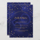 Um convite de aniversário glamouroso para ele e para ela. Um fundo azul marinho decorado com estrelas douradas falsas. A cor azul é irregular. Personalize e adicione um nome e detalhes da parte. Texto colorido do ouro. Um grande número de anos como marca d'água. Fundo: fundo azul marinho e estrelas ouros.