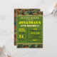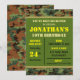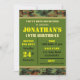 Convide seus amigos para se juntarem às suas celebrações de aniversário com esses convites de festa em estilo militar divertidos. Na parte de trás e na parte superior e inferior da frente há um padrão de camuflagem em marrons e verdes. A letra é definida contra um fundo verde em texto amarelo, preto e bege. Todo o texto principal foi transformado em modelos para facilitar a adição de seus próprios detalhes.