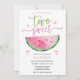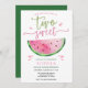 Celebre seu filho de dois anos com uma melancia no aniversário temido! Excelente para uma festa de aniversário para o seu bebê de verão. Este divertido convite de aniversário melônico apresenta uma melancia de aquarela e um roteiro "Dois Doce". Personalize com suas informações ou clique em "Clique para personalizar mais" para editar estilos de fonte, tamanho e cores.