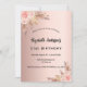 Para uma festa de aniversário moderna estilo "boho" 21ruas (ou qualquer idade). Um fundo rosa dourado. Decorados com ouro rosa e flores, rosas e erva-pampas cor-de-rosa. Personalize e adicione um nome e detalhes da parte.