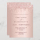 Um convite moderno, na moda e glamouroso para duas festas de aniversário de 21 anos (ou qualquer idade) de mulheres Um fundo metálico de rosa dourado falso com um elegante pingado de ouro rosa, pingado de tinta. Personalize e adicione nomes e detalhes da parte. Um convite para duas pessoas celebrando juntas, gêmeos, irmãs ou amigos.