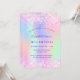 Um convite de festa de aniversário de 18 anos (ou qualquer idade) feminino e delicado. Na frente: Um arco-íris, fundo colorido holográfico em roxo, rosa, verde menta. Decorado com confetes rosa. Personalize e adicione um nome e detalhes da festa. O nome é escrito com uma fonte manuscrita, letras roxas.