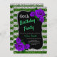 O verde elegante e a prata brilham e rosas roxas convites de aniversário para mulheres de qualquer idade. A idade pode ser alterada para qualquer idade. O texto pode ser alterado para qualquer coisa para ajustado do seu evento. Fontes, cor da fonte e texto são completamente personalizáveis! A forma e o tipo do papel podem ser personalizados para ajustado do seu orçamento e sabor!