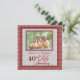 Tons de vermelho rubi e vermelho profundo se combinam com o menor indício de dourado e cinza damasco prateado para criar um convite de foto de 2 lados para a festa de aniversário de 40 anos de casamento de um casal.