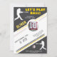 Convite de Aniversário Temático de Jogador de Beisebol do Modern Baseball. Celebre com estilo com este design elegante de convite de aniversário temático de beisebol! Com uma paleta de cores divertida e lúdica em cinza escuro, dourado e branco, letras em negrito e gráficos realistas de beisebol, este design esportivo é perfeito para qualquer fã de beisebol. O cartão apresenta silhuetas dinâmicas de jogadores, uma bola de beisebol 3D e detalhes de listras. Seja para uma festa infantil ou para um adulto amante de beisebol, este design premium e personalizável é um sucesso para qualquer celebração de aniversário!