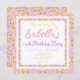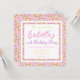 Bonito Verão cor-de-rosa Primavera verde de criança Convites de aniversário. Um cartão de convite quadrado divertido e colorido para sua filha dar aos amigos e familiares para convidá-los para a festa de aniversário. Altere o texto para seu próprio uso usando o botão Personalizar. Ou edite as cores e o layout na ferramenta design. As cores do texto são tiradas das cores da borda geométrica padronizada. As cores do trabalho de fronteira para aniversários em Primavera e Verão. O texto contém todos os pormenores importantes, como o nome, a idade, a hora e a data da criança de aniversário e a localização do local do partido. Um convite alegre para uma celebração importante. A parte de trás dos convites mostram um padrão bonito, que pode ser mantido como uma adorável decoração de parede ou guarita decorativa pelo receptor. Faça o download como um convite digital.