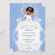 Convite Anjo Bebê Azul Prata Tom de Pele Morena