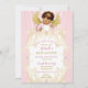 Convite Anjo Bebê Rosa Dourado Menina Étnica