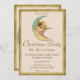 Anjo de vintage numa lua crescente e um convite de férias de fronteira aparado de ouro.