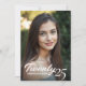 Este convite à graduação de eternos captura a alegria e a conquista da ocasião com um toque pessoal. A frente da placa apresenta sua foto favorita do formando, com o ano de graduação exibido elegantemente em um roteiro de pincel gracioso com o nome dos formandos mostrado abaixo. No verso, o cartão tem um fundo roxo charmoso, bordado no topo e no fundo por uma borda floral branca querido que adiciona um toque de elegância do eterno. Adicione os detalhes do evento, fornecendo aos convidados todas as informações necessárias em um formato claro e na moda. Este convite equilibra perfeitamente a celebração pessoal e a elegância formal, fazer-o como um bem-estar apreciado para este acontecimento marco.
