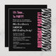 Convite Ano Personalizado Pink de Aniversário e Zebra Negr