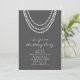 Cordas de pérolas de vintage decoram este velho Convite de aniversário inspirado em Hollywood. É simples e clássico com elegância subestimada. Se forem necessários itens adicionais para o seu evento, contacte-nos em prettyfancyinvites@gmail.com com o seu pedido.