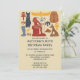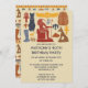 Jogue uma festa que é uma para os livros de história com estes antigos convites temáticos egípcios. Eles apresentam uma colagem de gráficos inspirada no antigo Egito. Minhas ilustrações retratam o deus Dente, a deusa do gato Bastet, o escaravelho sagrado, o sinal da vida, Rainha Nefertiti, Rei Tut, Anubis e mais. As ilustrações estão em tons de azul, laranja, vermelho, amarelo e marrom nesses convites coloridos com areia, com todos os detalhes de sua festa em marinho azul.
