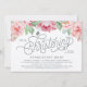 Escolha estes belos convites para comemorar o batismo ou batizar da sua bebê. O design floral da Vintage apresenta peônias cor-de-água cor-de-rosa pincelada no topo com sotaques decorativos de tipografia e cinzas azuis de enfumaçado.