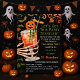 design de na moda com um esqueleto com uma mão segurando um coquetel com o tema da abóbora. Envolvido por bordas de folha de videira de abóbora verde e laranja, este convite é perfeito para se preparar para uma noite assustadora de diversão, coquetéis e figurinos. As costas exibem uma design de espiral escura e esbranquiçada com morcegos, crânios e aranhas para um floco de Halloween extra. ✔️ Ideal para festas anuais de Halloween ✔️ Perfeito para comemorações de coquetel e fantasias ✔️ texto totalmente personalizável - edite detalhes para seu evento Seja hospedando uma reunião de casa assombrada, uma noite de coquetel de Halloween chic, ou uma cabana assustadora cheia de fantasias, este convite impressionará seus convidados. Parte de uma coleção de correspondência de cheios - misturar e combinar para um conjunto completo de partes!