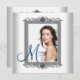 Anúncios elegantes de graduação em fotos, azul e branco. Adicione os detalhes do evento e a foto a este bonito anúncio de graduação em foto azul-lacrimogênio.