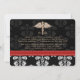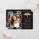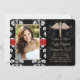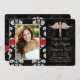 Adicione sua foto ou foto favorita a estes anúncios de formatura em optometria floral, elegantes e formais, pretos e brancos, de optometria floral, e convites com um cobra caduceus dourado e design de fita vermelha estampada para o dentista graduado. Personalize-o para dizer o que quiser no verso e na frente destes convites de formatura de formando optometrista com as iniciais D.O. nas costas. Trabalho de arte © Chrissy H. Estúdios, LLC. Todos os direitos reservados.