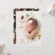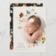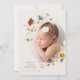 Este anúncio elegante e moderno de modelo de na moda vertical de fotografia de nascimento é um cartão de frente e verso duplo, com dois lados, que apresenta uma fotografia de recorte em forma oval da sua bebê recém-nascida e florais botânicos adoráveis que delineiam a imagem do bebê. Personalize este cartão com fotos com sua mensagem personalizada da família (mãe, pai, irmãos, se você quiser) que pode ser personalizada no verso com qualquer obrigado que você enviar por mensagem ou citação dos novos pais. Há também uma segunda foto horizontal no lado de trás. Este cartão de anúncio de bebê apresenta uma paleta colorida em tons coloridos vermelho, verde, amarelo, azul e rosa.