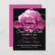 Belo anúncio de Save the Date de casamento com uma fotografia de um botão de rosa rosa coberto de orvalho, em um fundo preto. Personalize o texto de acordo com as suas necessidades. Ótima maneira de notificar todos com bastante antecedência, sobre o seu casamento de destino.