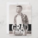 Anúncios modernos, corajosos da graduação. A tipografia corajosa com rotulação preto e branco, muda a cor da parte traseira, mostra a personalidade dos seus formandos com este anúncio floral da graduação do impressão. Personalize o texto com nome do seu formando, escola e ano da graduação, adicione sua foto e você é feito! Para o design adicional do anúncio da graduação as opções satisfazem verificam para fora nossa coleção do formando em MetroEvents em Zazzle.