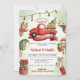 Celebre a chegada do seu pequeno com este Natal vintage de Convite para Chás de fraldas de Caminhão! Este design apresenta uma área de férias com aquarela rustica com um fundo com aquarela verde.