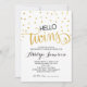 Convite ao Chá de fraldas Dourado Glitter Hello Twins