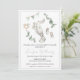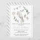 Cartão de convite para chás de fraldas de eucalipto verde em aquarelas, brinquedos neutros em termos de gênero ou bebês.