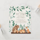 Animais de floresta russos com ursos, raposa, veado, coelho, esquilo, guaxinim e ouriço enquadrados com ramos de folha verdes. Visite o nosso compro para ver toda a nossa coleção de amigos de animais da floresta.