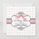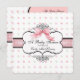 Este Convite para Chá de fraldas apresenta elegantes espirais em prato francês, pontos cor-de-rosa e verdes no fundo, uma fita recheada e um belo arco rosa pintado à mão. Tudo feito de arte original por Audrey Jeanne Roberts. O resultado é um belamente contemporâneo conjunto de Bebês. No verso há o mesmo padrão de pontos e um suporte revelando um lugar para a foto do seu bebê. Pode adicionar facilmente a sua própria imagem ou alterar a mensagem. VOCÊ TAMBÉM PODERIA GOSTAR DE: