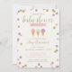 Este convite temático impresso de sorvete frente e verso é perfeito para um chá de fraldas de meninas em qualquer época do ano! Inclui bolinhas cor-de-rosa, roxo, ouro e brilho e cones de sorvete.