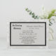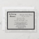 Procurando um convite de serviço de memorial com um toque clássico? Esta design é um convite. Apresentando as cores clássicas das cinzas e preto, o design deve agradá-lo. As palavras "In Loving Memory" aparecem à esquerda com um lugar para você personalizar o convite de serviço memorial com o nome do seu amado e as datas. Abaixo você pode personalizar com as relações familiares e depois os detalhes específicos do serviço memorial. Uma bela maneira de convidar convidados para uma bela comemoração. Compaixão por direitos autorais