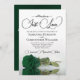Este convite romântico de casamento apresenta uma rosa verde-esmeralda de solteiro longo, empinada, ao lado, espelhada numa piscina de água. O título está escrito em letras elegantes e diz: Nada de Rico, apenas amor. A parte de trás é uma cor verde marmoreada profunda com um buquê de rosas e espaço para detalhes de casamento, incluindo um código QR onde seus convidados podem obter mais informações e/ou RSVP on-line. Este convite é uma combinação maravilhosa de moderno e eterno - uma forma perfeita de convidar seus amigos e famílias a compartilhar sua alegria no seu dia especial!