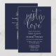 Este convite de casamento em azul marinho com letra elegante minimalista pode ser personalizado com suas informações em tipografia sofisticada com os detalhes do seu site de casamento e seu código QR no verso. Projetado por Thisisnotme©