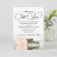 Este convite romântico de casamento apresenta um pêssego pálido de solteiro longo e enraizado ou rosa cor de laranja claro que está do seu lado espelhado numa piscina de água. O título está escrito em letras elegantes e diz: Nada de Rico, apenas amor. A parte traseira tem uma buquê de rosas e espaço para detalhes do casamento, incluindo um código QR, onde seus convidados podem obter mais informações e/ou RSVP on-line. Este convite é uma combinação maravilhosa de moderno e eterno - uma forma perfeita de convidar seus amigos e famílias a compartilhar sua alegria no seu dia especial!