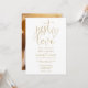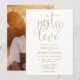 Este convite de casamento em letra cursiva elegante dourada pode ser personalizado com todas as informações do seu dia especial de casamento e foto especial no verso. Criado por Thisisnotme©