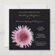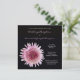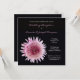Este convite de recepção de casamento apresenta uma flor de gerbera rosa e branca em um fundo preto, tornando-se um convite de recepção de casamento com gerbera muito único e elegante. Copyright henishouseofpaper