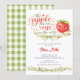 This fruit themed baby shower invitation blends rustic country charm with modern script typography, making it ideal for a farmers market baby shower, locally grown theme, or garden party event. The warm red apples and soft green accents create a fresh, timeless look your guests will love.