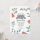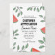 Este convite de piquenique de Apreciação do Cliente apresenta uma fronteira de cunhas de melancia e ramos de folhas verdes. Personalize este simples convite temático de verão com todos os detalhes do evento.