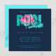 Jogando uma piscina tropical e procurando um convite adequado? Você está no lugar certo! Este design chic, legal e moderno apresenta arte de texto com uma piscina de natação azul-esverdeada, um flutuador rosa quente, e a tipografia moderna com água salgada sobre fundo azul-da-noite é perfeita para a sua festa de piscina. Basta adicionar os detalhes da sua festa ao cartão e preparar-se para a festa!