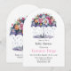Esta delicada ilustração de aquarela apresenta um guarda-chuva azul-escuro enfeitado com flores rosas, vermelhas e amarelas vibrantes, pegando suaves gotas de chuva azul - um símbolo bonito da alegria e bênçãos sobre os futuros pais em seu chá de fraldas.