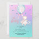 Celebre seu dia especial com este Convite para Chás de fraldas Aqua e Roxo de Aqua Cáudia Cuta. Apresentando um design de aquarela suave no aqua pastel e tons roxos, borboletas, uma menina fofa com um balão azul, e um ursinho de coelho, este convite traz um toque doce e moderno para a celebração do seu chá de fraldas. Personalize facilmente com seus detalhes de eventos para criar uma manutenção exclusiva para os convidados.
