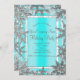 Convite Aqua Blue & Silver Winter Snowflakes Partido Elega