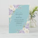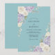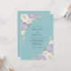 Soft white roses and delicate lavender blooms intertwine with muted green foliage. This design evokes a romantic and airy atmosphere against a calming aqua backdrop. Perfect for a classic and elegant celebration.