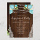 Aqua Mint Rustic String Lights Floral Noivado Invitation. Este design apresenta um fundo de madeira rústico com flores verdes aqua e hortelã acentuadas com luzes de cordas reluzentes. Perfeito para uma festa de noivado de inverno ou primavera.